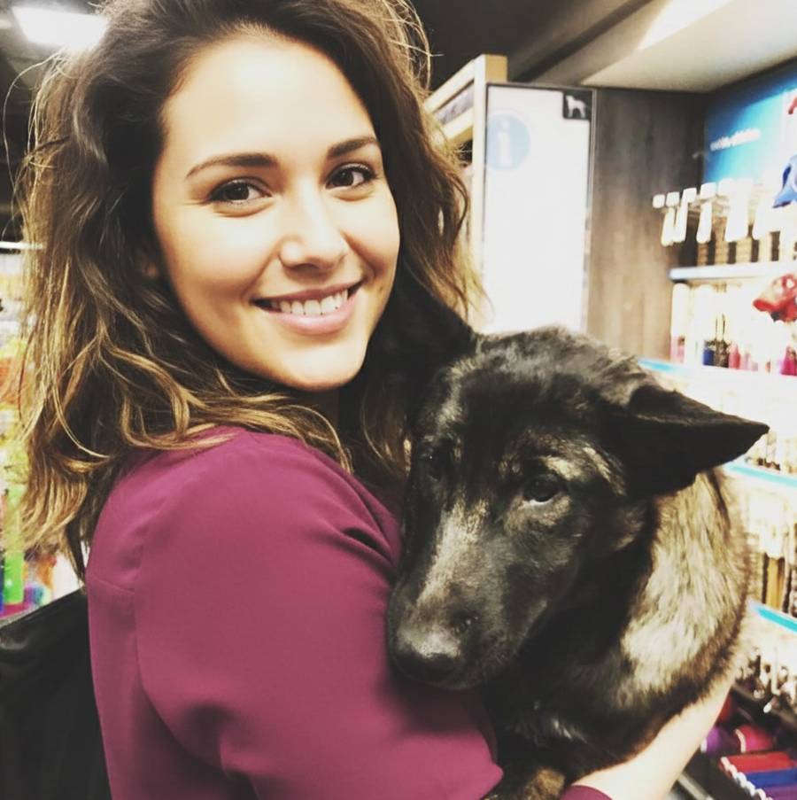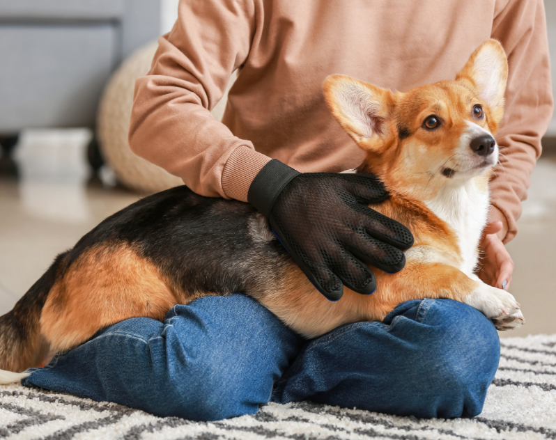 Familia de un humano y una perrita grande con pancita sensible.